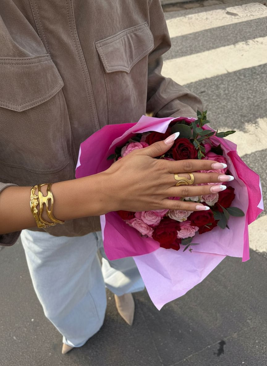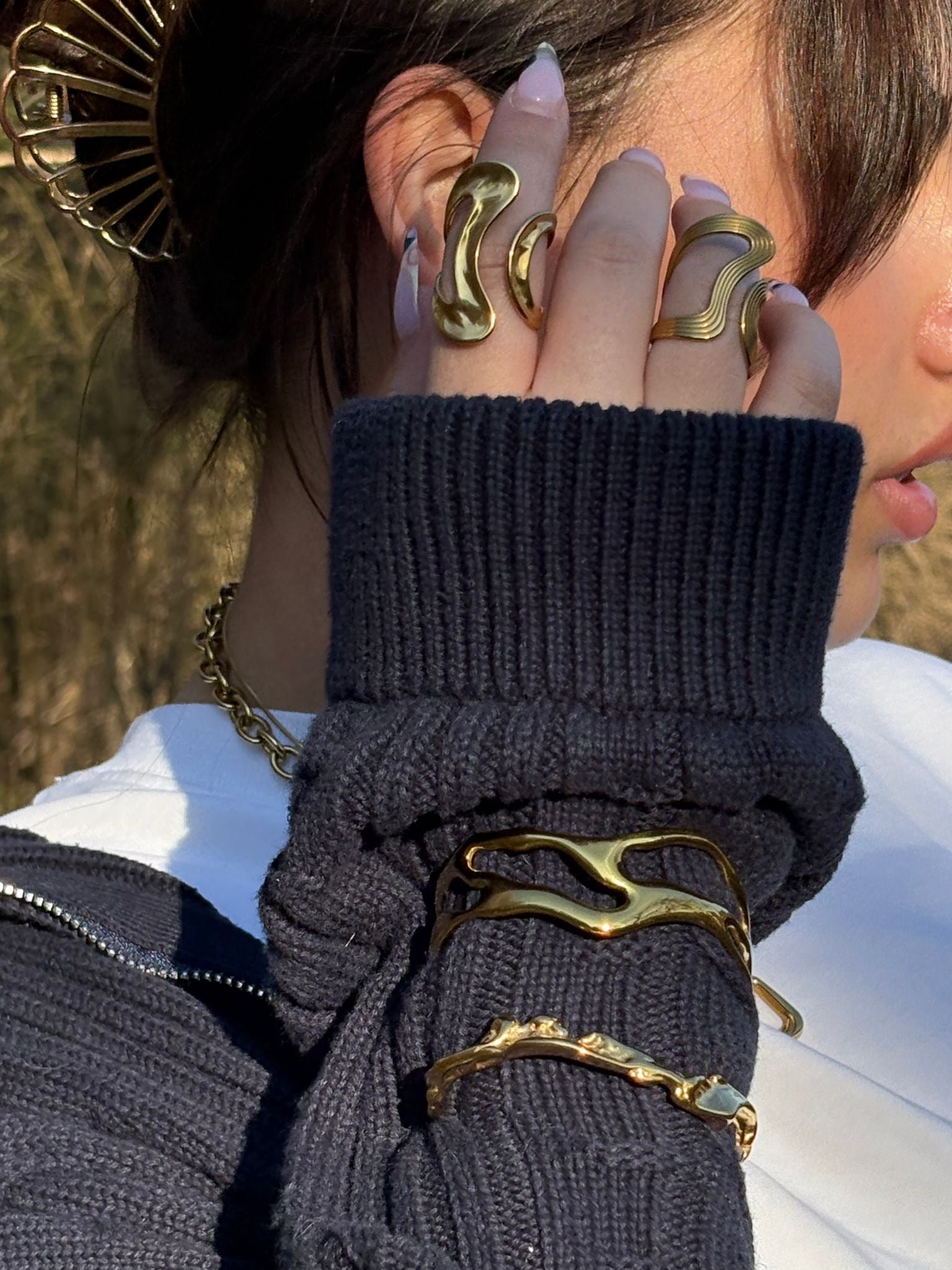 Dieses Armband ist kein Accessoire, es ist ein Statement. Die organische Wellenform schmiegt sich mühelos ans Handgelenk und verleiht jedem Look sofort Editorial-Energy. Ein echtes Power-Piece für jeden Tag.